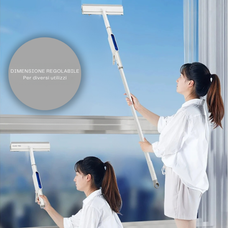 Ontdek de draaibare raamwisser 3 in 1, ontworpen om het schoonmaken van ramen en gladde oppervlakken te vereenvoudigen. Dankzij de draaibare kop en de telescopische steel kun je ook de moeilijkste hoeken gemakkelijk bereiken, wat zorgt voor stralende resultaten zonder strepen.